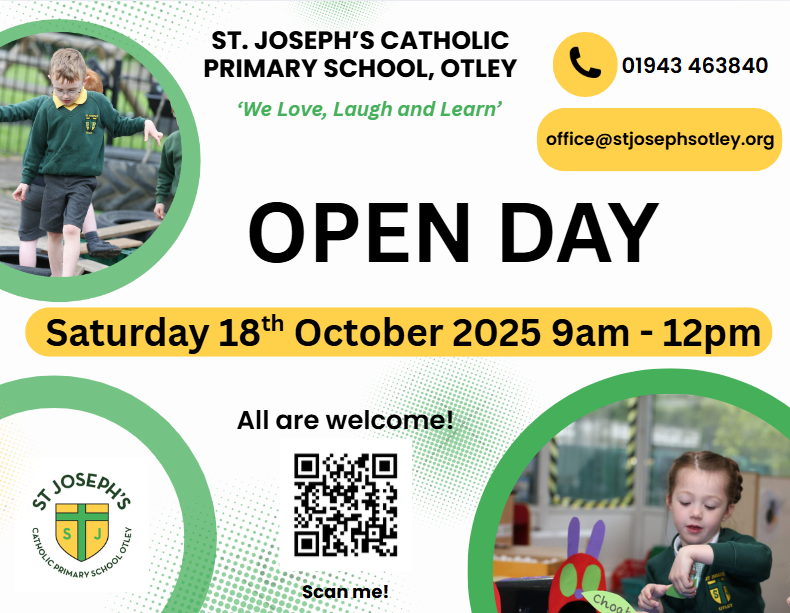 If you are unavailable to see our school on the Open Day, then please do book a tour via the school office - office@stjosephsotley.org or 01943 463840.